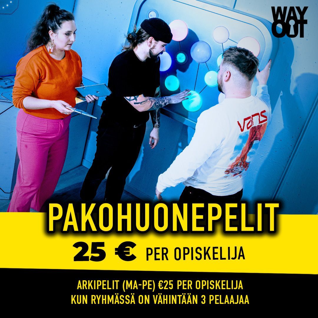 Pakohuone WayOutilla on ainutlaatuinen kokemus, sillä suunnittelemme ja rakennamme jokaisen huoneen itse. Huoneiden teemat ja tarinat tempaavat mukaansa ja takaavat mieleenpainuvan pakopelikokemuksen. Rennot, mutta asiantuntevat työntekijämme huolehtivat, että teillä on varmasti hauskaa!