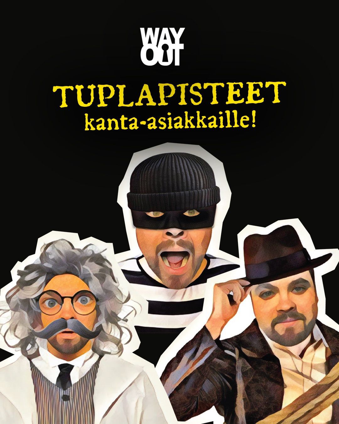 Pakohuone WayOutilla on ainutlaatuinen kokemus, sillä suunnittelemme ja rakennamme jokaisen huoneen itse. Huoneiden teemat ja tarinat tempaavat mukaansa ja takaavat mieleenpainuvan pakopelikokemuksen. Rennot, mutta asiantuntevat työntekijämme huolehtivat, että teillä on varmasti hauskaa!
